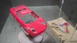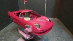 ホンダNSX タミヤ 1/24 ホンダ NSX 捨てサフ、ペーパーがけ、再びサフ、本体色塗装。 イニDの5thのNSXのカラーにしたいが。 MSシャアレッドそのまま使っても良かったがつまらないので調合。 さすがに1度で載らない。 1時間乾燥させて2度目を塗る予定。